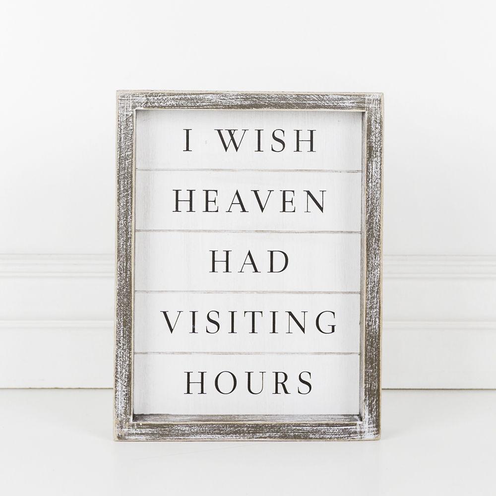 This neat wood framed sign uses a versatile combination of white and black colors and has dimensions of 8" by 10" by 1.5", making it look great either hanging or freestanding. Displaying, "I Wish Heaven Had Visiting Hours", this wood sign can be a medium of expressing your love to one of your departed buddies.