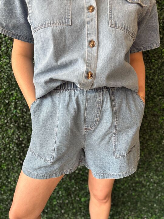 The High Tide Shorts are your new go-to for comfort and style! Featuring a soft elastic waistband, these denim shorts offer an easy, cozy fit all day long. Pair them with the matching High Tide Top for an adorable, coordinated outfit that’s perfect for sunny adventures and playful days. Stay sweet and bubbly wherever you go!