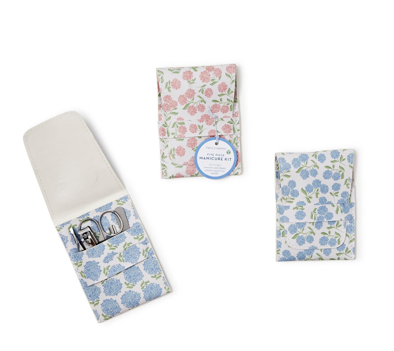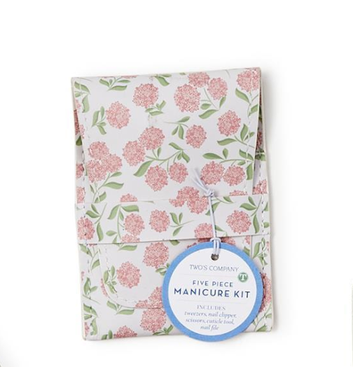 Indulge in a touch of floral elegance with Hydrangea Print 5 Pc Manicure Kit. This luxurious set features a selection of essential tools for perfecting your nails, all contained in vegan leather with a stunning hydrangea print. Whether for self-care moments at home or as a thoughtful gift, this kit is a delightful addition to your vanity or travel bag.