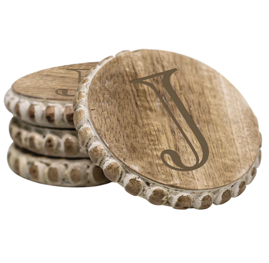 Initial Beaded Edge Coasters with a laser etched design elevates every home. Perfect for a hostess gift, housewarming or gift to yourself!