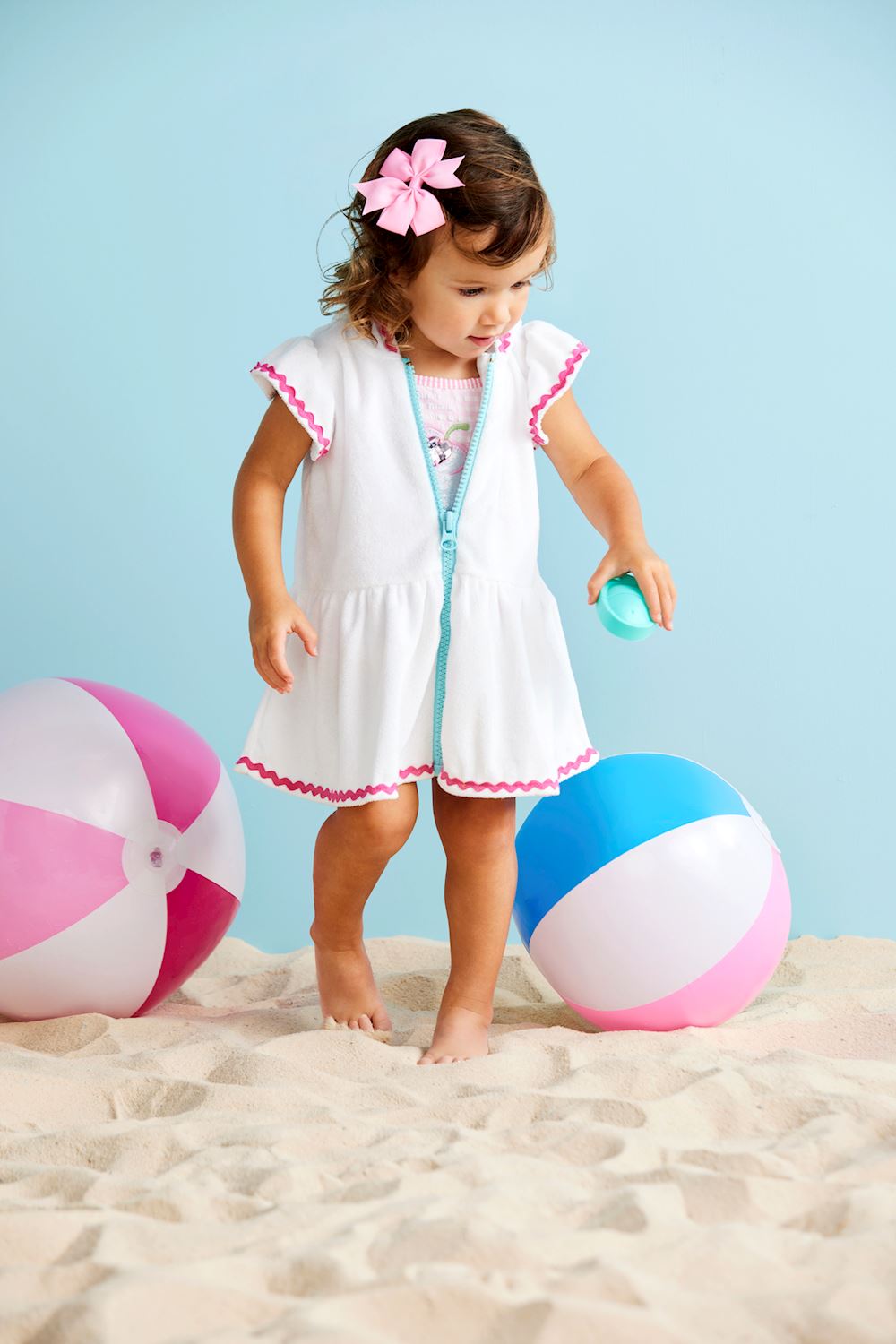 The Toddler Zip Cover-Up is a cozy and stylish addition to your little one's wardrobe. Crafted from soft terry cloth, this hooded cover-up provides warmth and comfort, making it perfect for after-bath snuggles or beach outings. The front zipper closure allows for easy dressing and removal, while the charming ric-rac contrast trim adds a playful touch to the design.