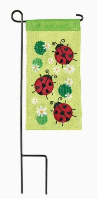 DOUBLE APPLIQUE MINI FLAGS 4" W X 8.5 H INDIVIDUAL BAG WITH HANGING HEADER CARD FLAG POLES ARE INCLUDED WITH THESE MINI FLAGS.