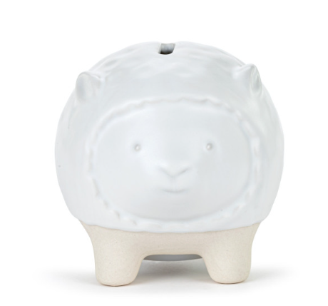 It's never too soon to teach a little one the value of a dollar. And now you can do it in playful style with the off-white and brown Lamb Bank. Whimsical and functional: a win-win!