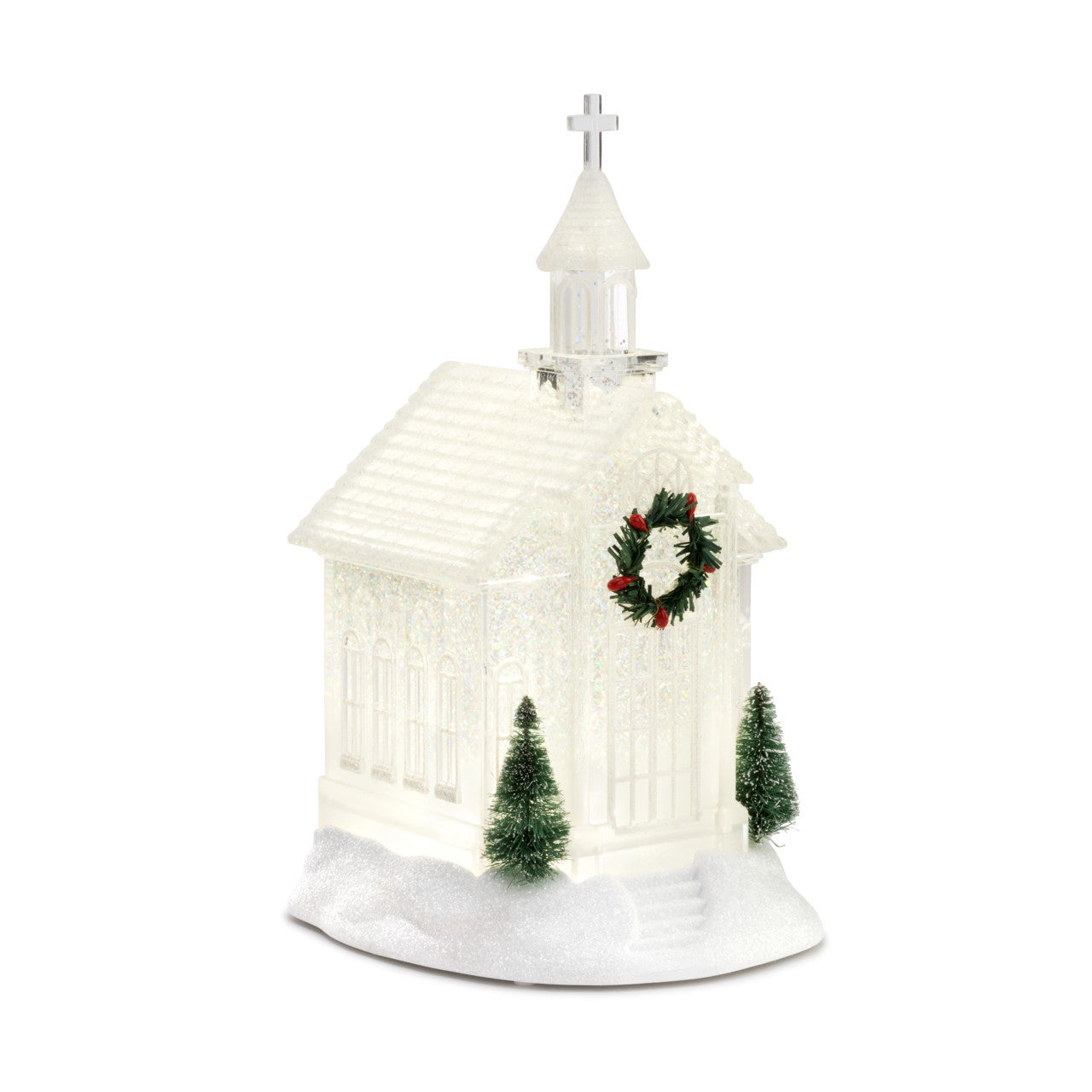 The lovely Lit Crystal Church Figure is the perfect meaningful piece to add to any home in celebration of the holiday season. This striking crystal ornament features a traditional vintage-inspired aesthetic that draws design elements from a classic church with a steeple. Holiday greenery throughout adds a pop of color while beautiful LED light adds a glowing effect to this timeless ornament. A part of our Crystal Collection, this piece is a member of a selection of striking keepsake ornaments and illuminated holiday scenes that sparkle and glow with the magic of the season, making them sure to delight and inspire wonder while decorating for the holidays. Carefully packaged in a gift box, this timeless piece will make for the perfect addition to any home for the holiday season as a thoughtful present.