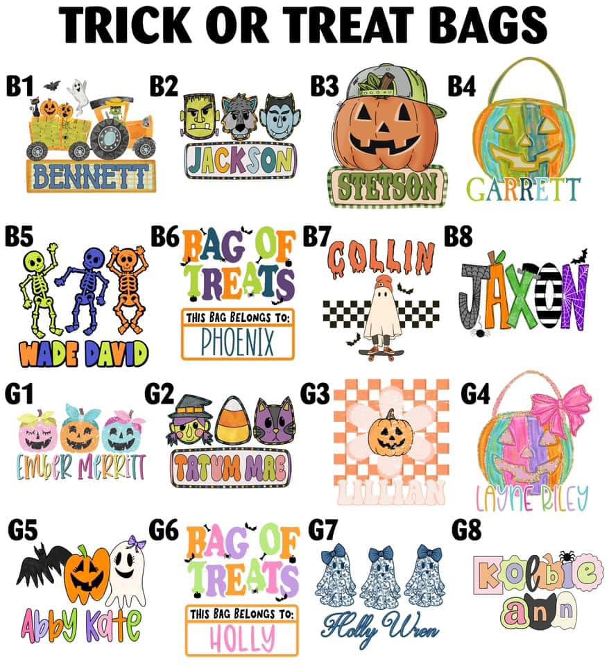 Choose from over 9 of the cutest designs ever to create the most perfect trick or treat bag!