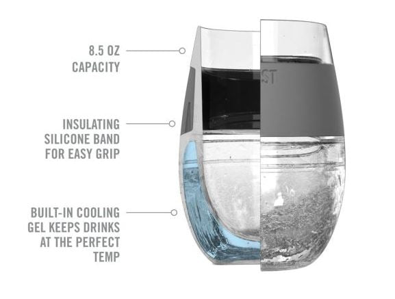 -Inside the BPA free plastic walls of the HOST® Wine FREEZE™ Cooling Cups lies our proprietary cooling gel. This gel was precisely engineered in house to provide the perfect temperature for white and red wines for hours