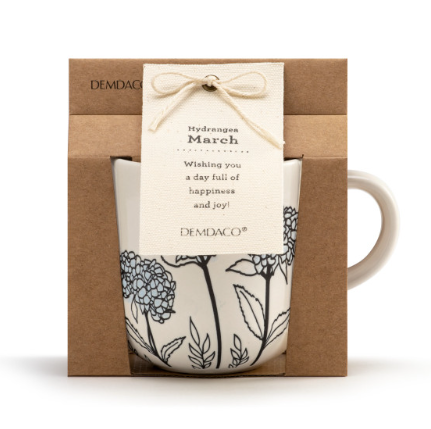 This beautifully carved mug showcases hydrangeas, the month of March's birth flower! A gorgeous and unique mug to help celebrate a special friend. Also, a great gift for the coffee or tea lover.
