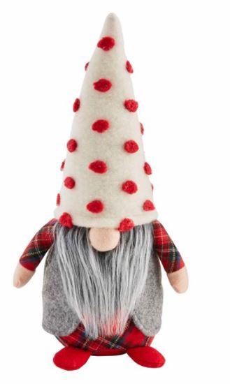 Wool and felt gnome features faux fur beard and pom-pom embellishments.