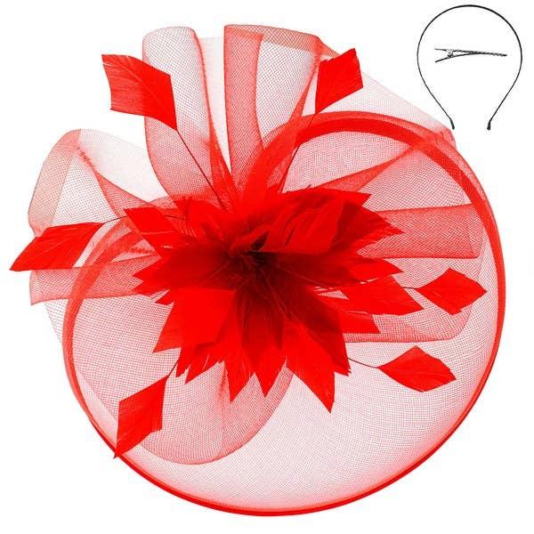 Mesh Lined Fascinator Red