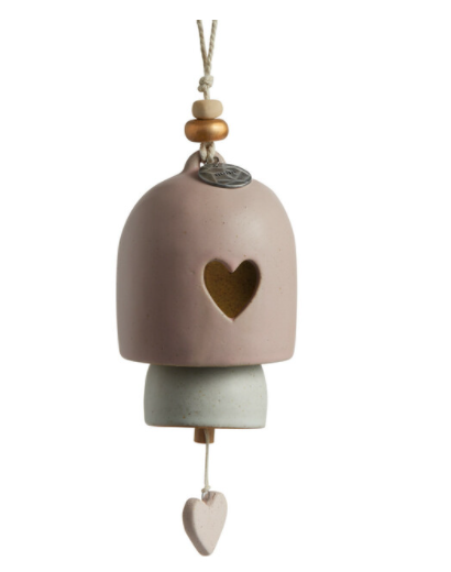 Give beauty and relaxation with our Inspired Bells collection, a selection of artisan bells in soft, serene colors with soothing, gentle rings bearing sentiments of faith and love. Our Inspired Bell - Mom is a ceramic indoor/outdoor bell in pink and white with a heart pull and a heart cutout. The sentiment on the bell reads, "Mom." You can give this calming memory bell as a Mother's Day, birthday, holiday, anytime, rough times, self-care or hospital gift. It can be a permanent token of your love. This handcrafted, personal and unique gift can be enjoyed as a relaxing sound in your home or office.