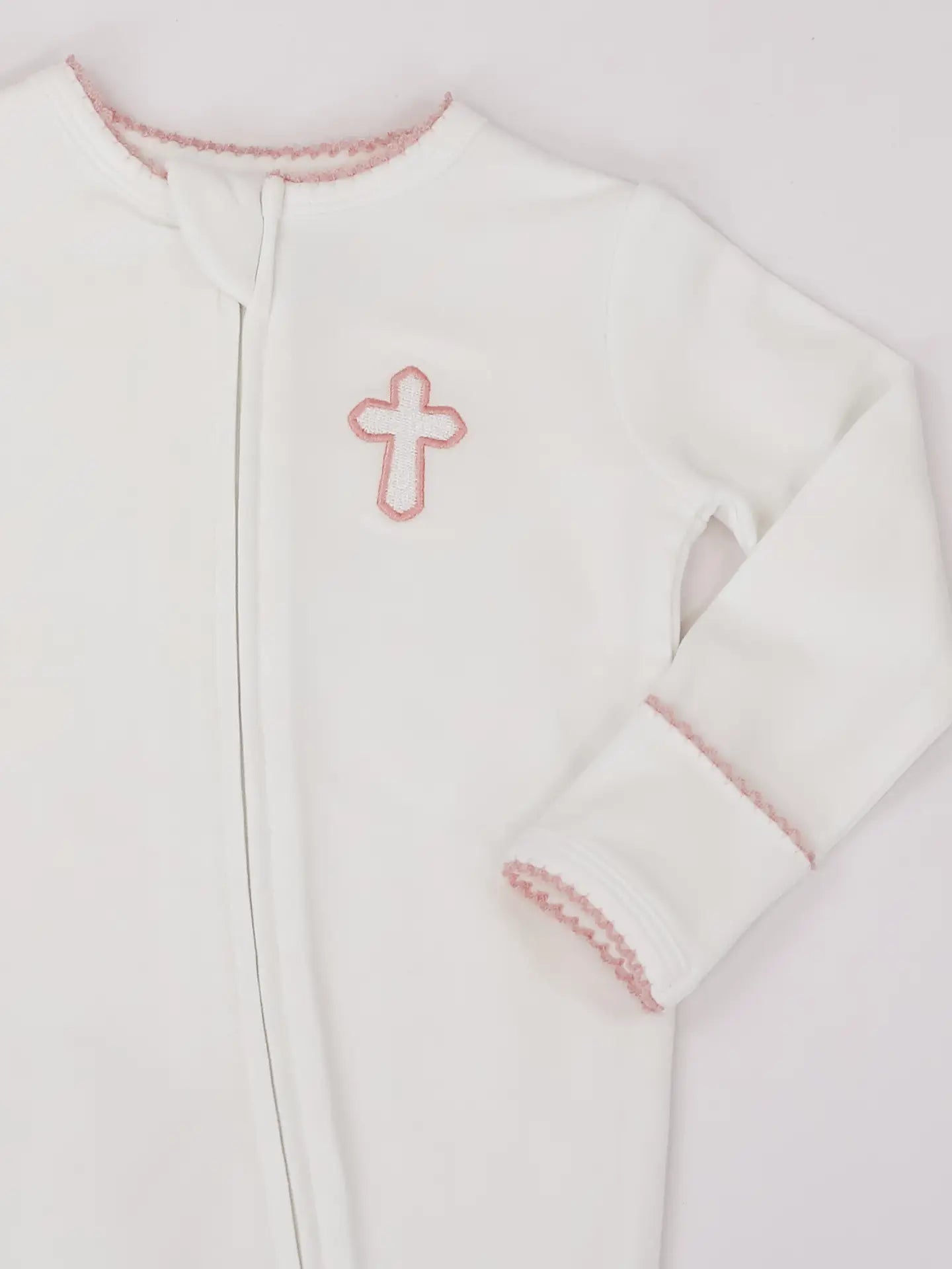 Sweet, soft, and made for snuggles 🤍 This classic white footed zip romper features the most charming embroidered detail at the chest and accented with delicate contrast picot trim along the neckline and cuffs. Designed for cozy days and peaceful nights, the smooth zip closure makes diaper changes quick and fuss-free. A timeless staple that feels just as special as it is practical—perfect for newborn photos, everyday wear, or gifting.