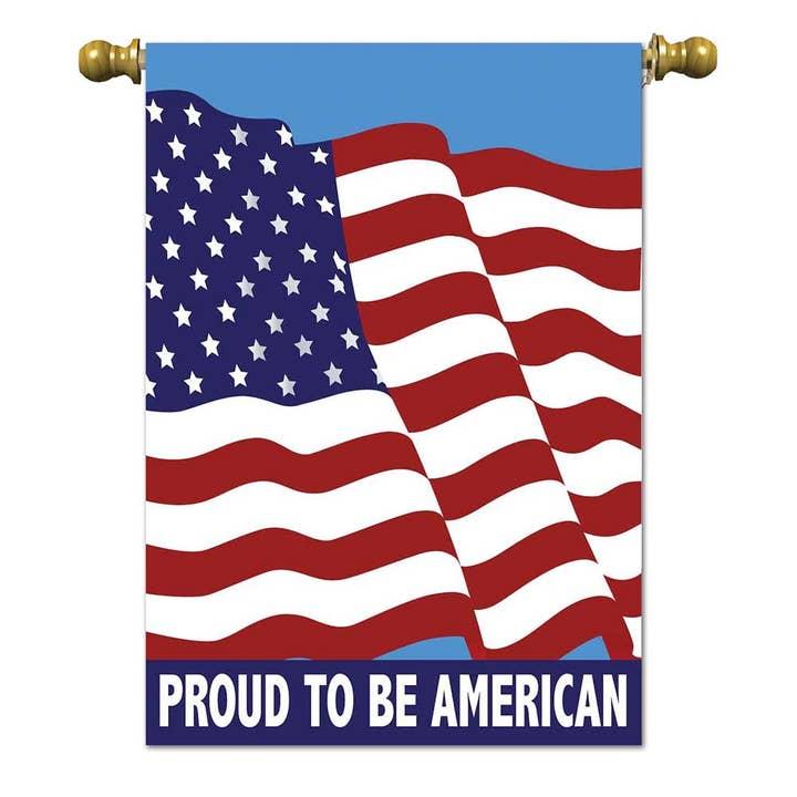 Double sided applique flags are double thickness, readable on both sides. They are heavier than most flags on the market and will hold up longer. They have detailed stitching and a combination of appliqued fabric and embroidery stitch.