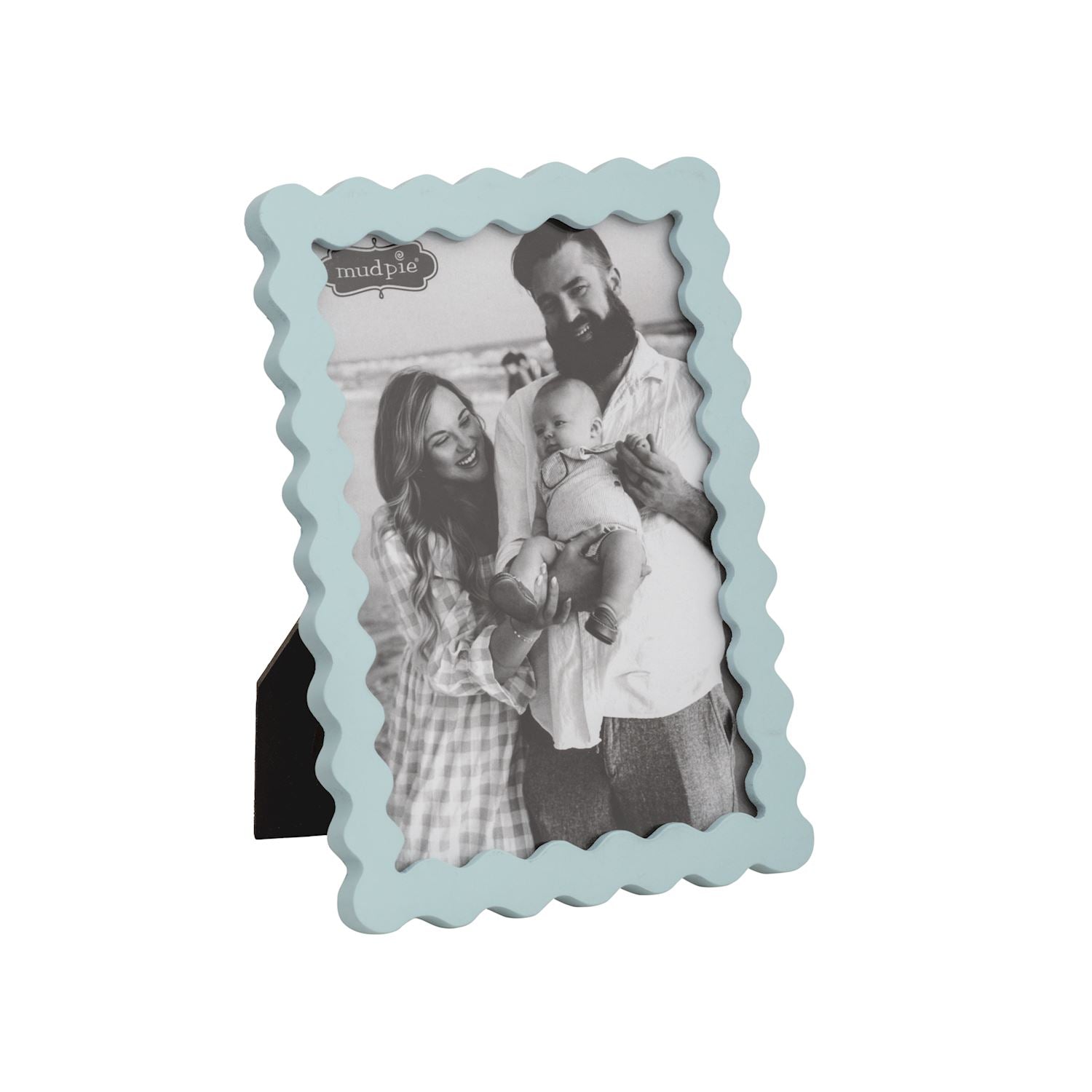 Wooden frame holds 4" x 6" photo. Easel back.