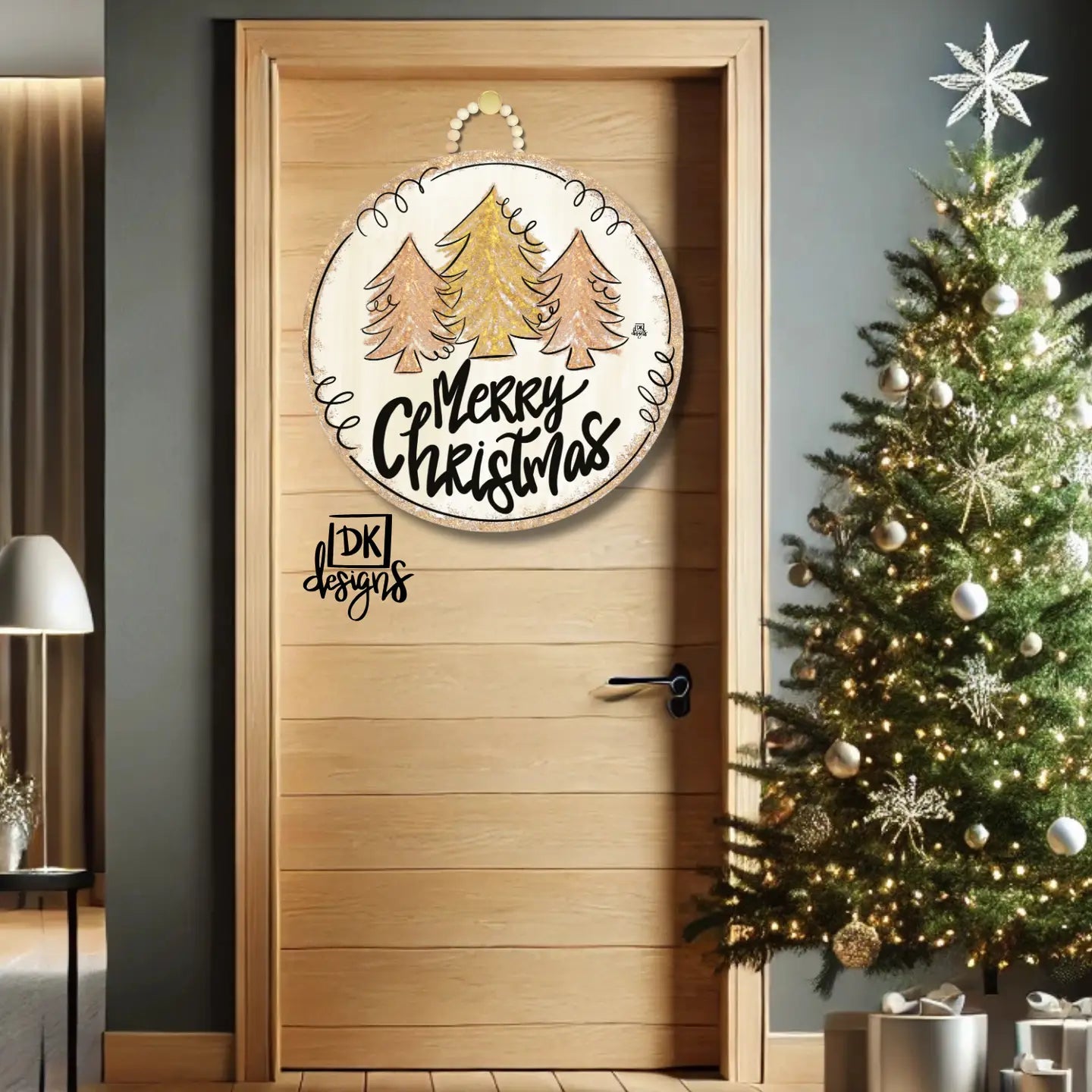 Glitter Trees is a UV Printed Door hanger measuring 23" round that is perfect for indoor or outdoor use. All original designs are printed on a moisture resistant high quality 1/4" board and sealed for additional protection with 2 coats of a gloss finish.