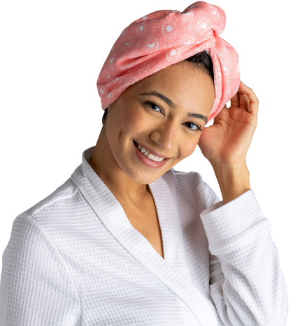 Shaped to fit post-shower locks, our super absorbent turbo towel quickly dries your hair without damage from friction or heat. Snooze a little longer and get ready faster with hands-free hair care you can set and forget.