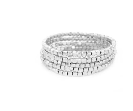 Talk about a classic, this stack features several metallic beaded bracelets that look great all together or ever paired with your favorite watch.