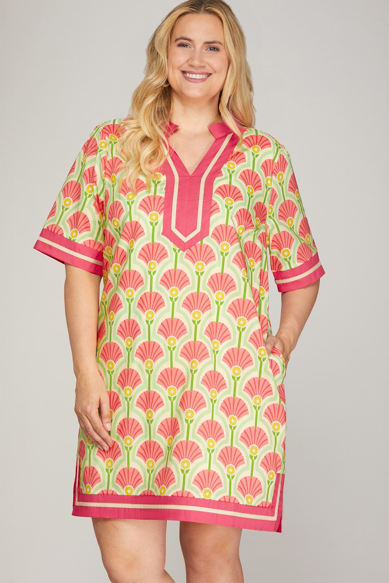 Twirl into spring with this adorable H-line mini dress! Featuring a charming printed design and practical pockets (because who doesn't love them?), this short-sleeve beauty is perfect for garden strolls, brunch dates, or casual weekend adventures. The flattering silhouette celebrates curves while keeping you comfy and cute. Dress it up with heels or down with sneakers—this versatile piece is your new go-to for effortless style!