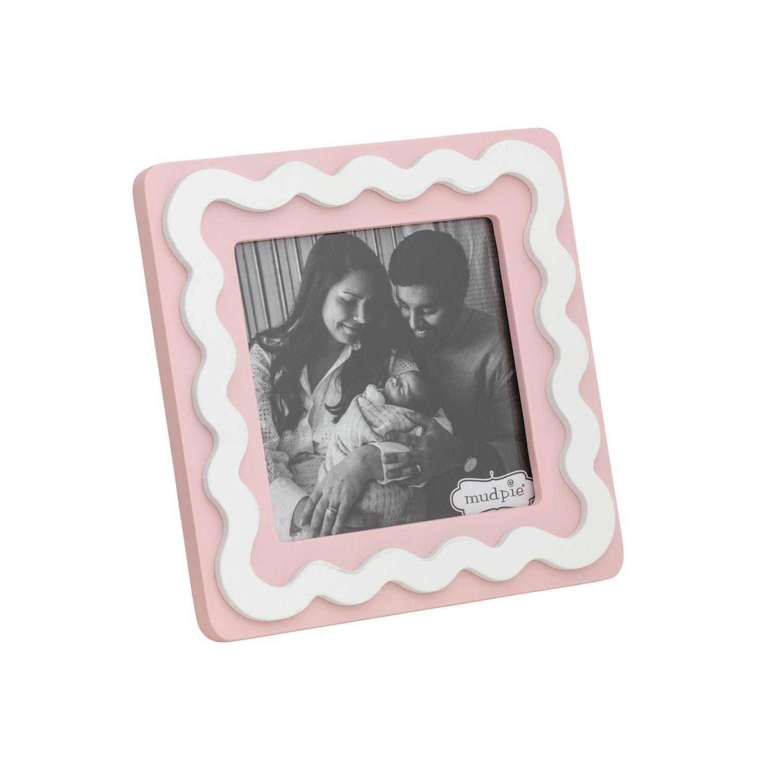 Wooden frame holds 4" x 4" photo. Easel back.