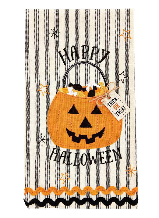Appliqued cotton hand towel with embroidered sentiment and ric-rac trim.
