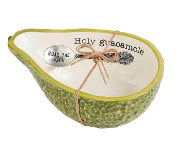 2-piece set. Hand-painted ceramic figural dip bowl. Comes with silverplate spoon.