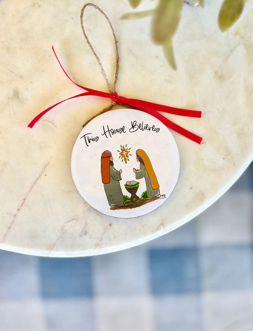 Looking for a special, one of a kind ornament? Our This House Believes wood and enamel ornament is the perfect gift for decorating your tree! Use it as an ornament, a large gift tag, or to hang year round!