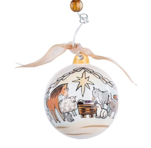 The weary world rejoices! Bring the magical scenery of Jesus's birthday to your Christmas tree with this gorgeous ball ornament.