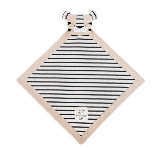 The Noah's Ark Tiger Blankie is an inspiring, 14" square, cuddly nap companion for baby with the embroidered message, "Little Tiger... You are One-of-a-Kind!" Lori Siebert brings the Biblical story of Noah and the Ark to life for little ones through unique animal designs on soft pieces such as plush animal figures, blankies, and nursery keepsakes. Inspired by the timeless story of Noah’s Ark, this artisan plush collection in natural earth tones blends soft and cozy materials with favorite animals, making a wonderful addition to any nursery. Jersey-knit materials with hand stitched elements, unique packaging in the shape of ark creates a wonderful easy gift. made from polyester; measures 14"