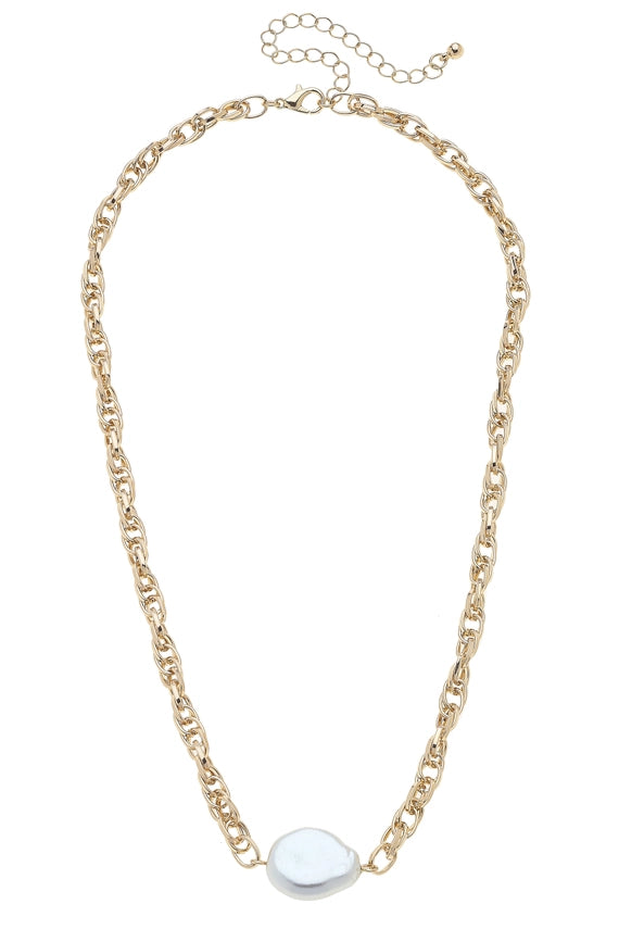 An organic string of irregular baroque pearls interspersed with shiny gold chain links. Bold, sculptural, and fashion‑forward—makes a statement with artful presence.